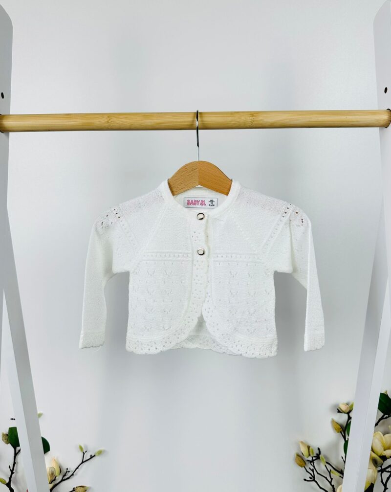 Болеро „Снежен стил“ е изискано плетено допълнение, което съчетава фин дизайн с практична функционалност. То е леко, удобно и завършва перфектно всяка официална визия – особено подходящо за носене върху рокли по повод празници, тържества или фотосесии.