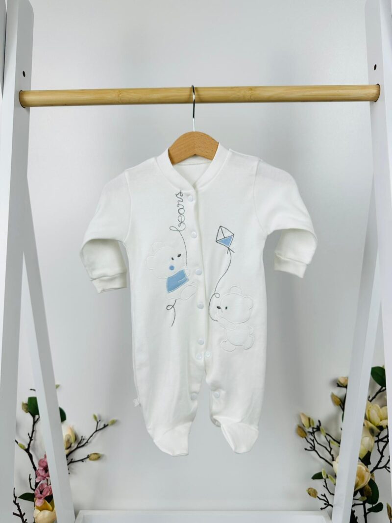 Гащеризон „Мечета с хвърчило“ е изключително фино и практично предложение за всеки ден. Нежната апликация с две мечета, които играят с хвърчило, създава игриво настроение и нежна визия, която радва както бебето, така и родителите.