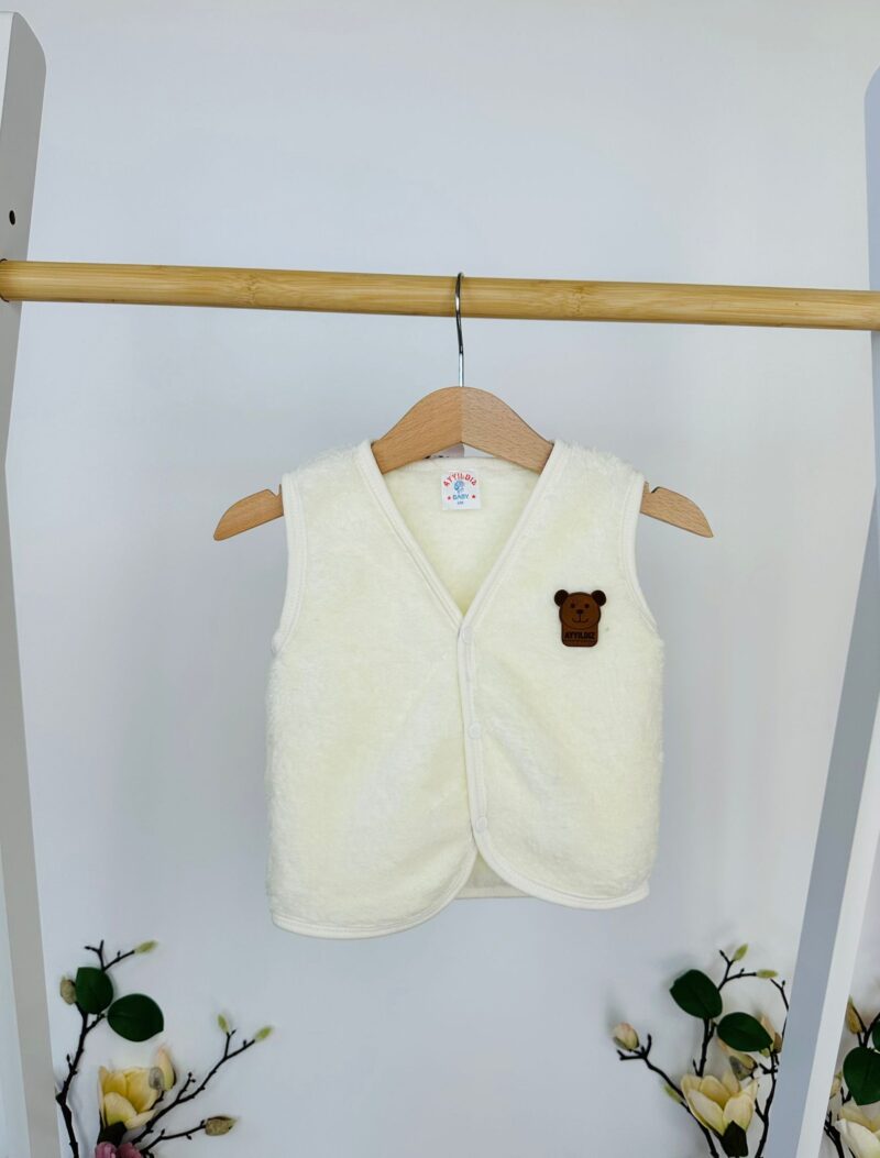 🧸Топлина и уют в най-сладката форма! Елекът е създаден, за да осигури комфорт и мекота на всяко детенце през по-хладните дни. С пухкава текстура и сладка апликация на мече, той добавя чар към всяка детска визия и е идеален за ежедневни разходки или игра у дома.