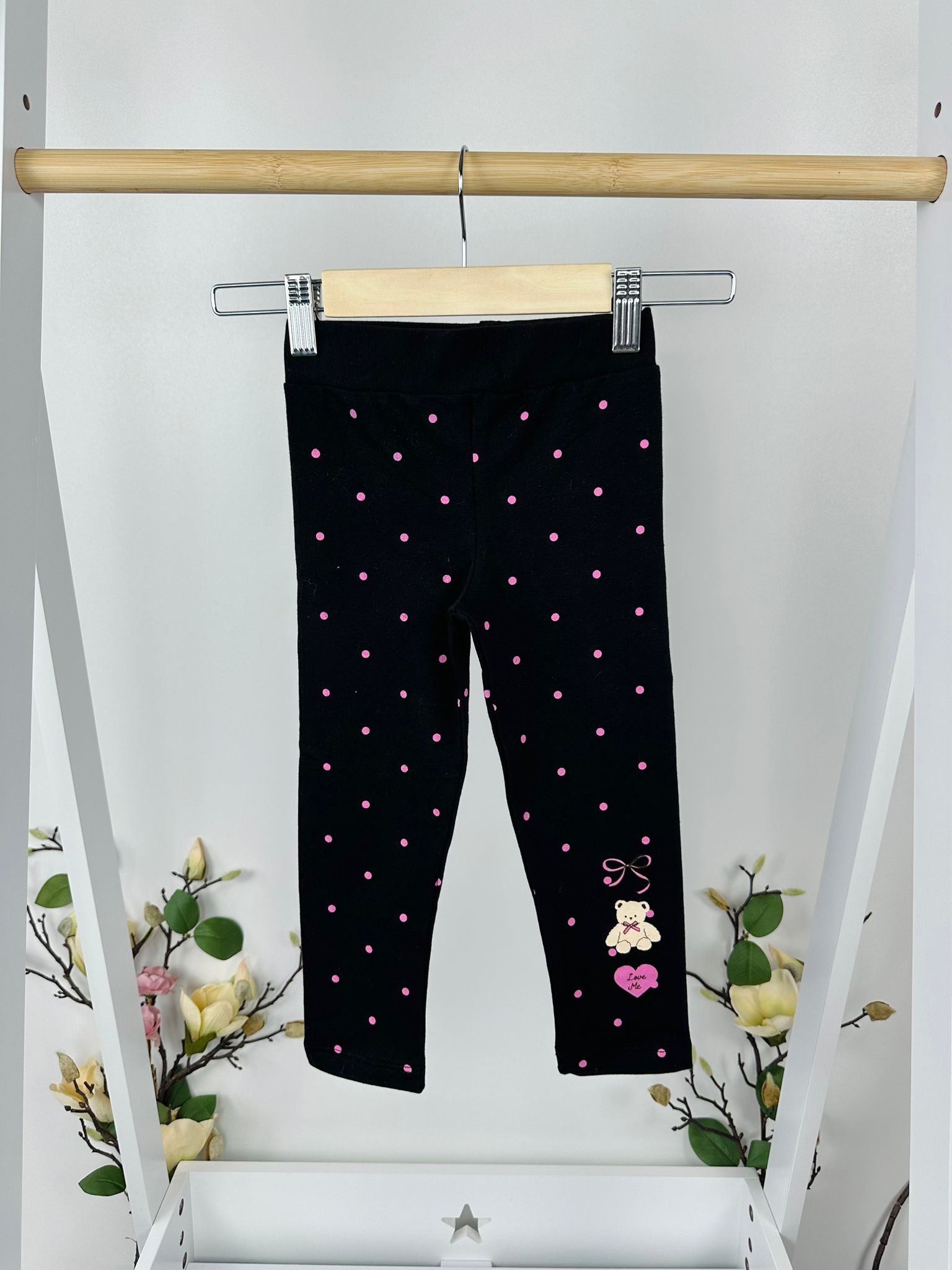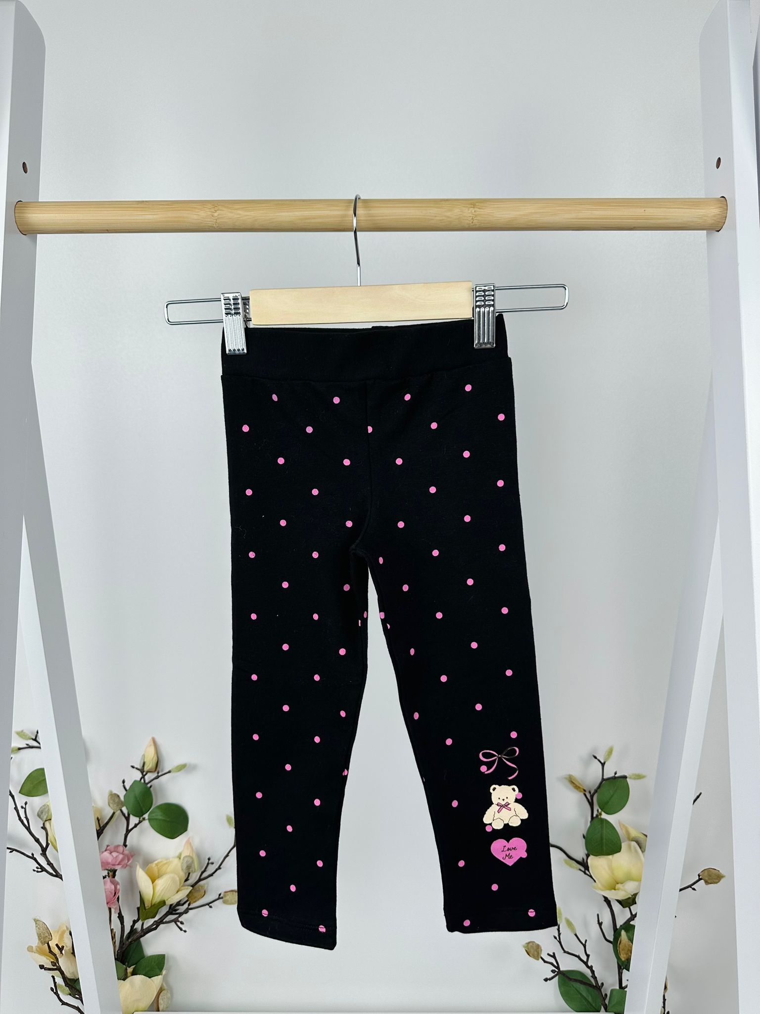 Моделът е акцентиран с фини точки и сладка апликация, които придават настроение и детски чар. Кройката е практична и удобна, следва движенията на детето и се съчетава лесно с различни блузки.