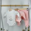 Добави към гардероба на твоето бебе стил и комфорт с този очарователен комплект, който носи настроение и мекота във всяко движение.