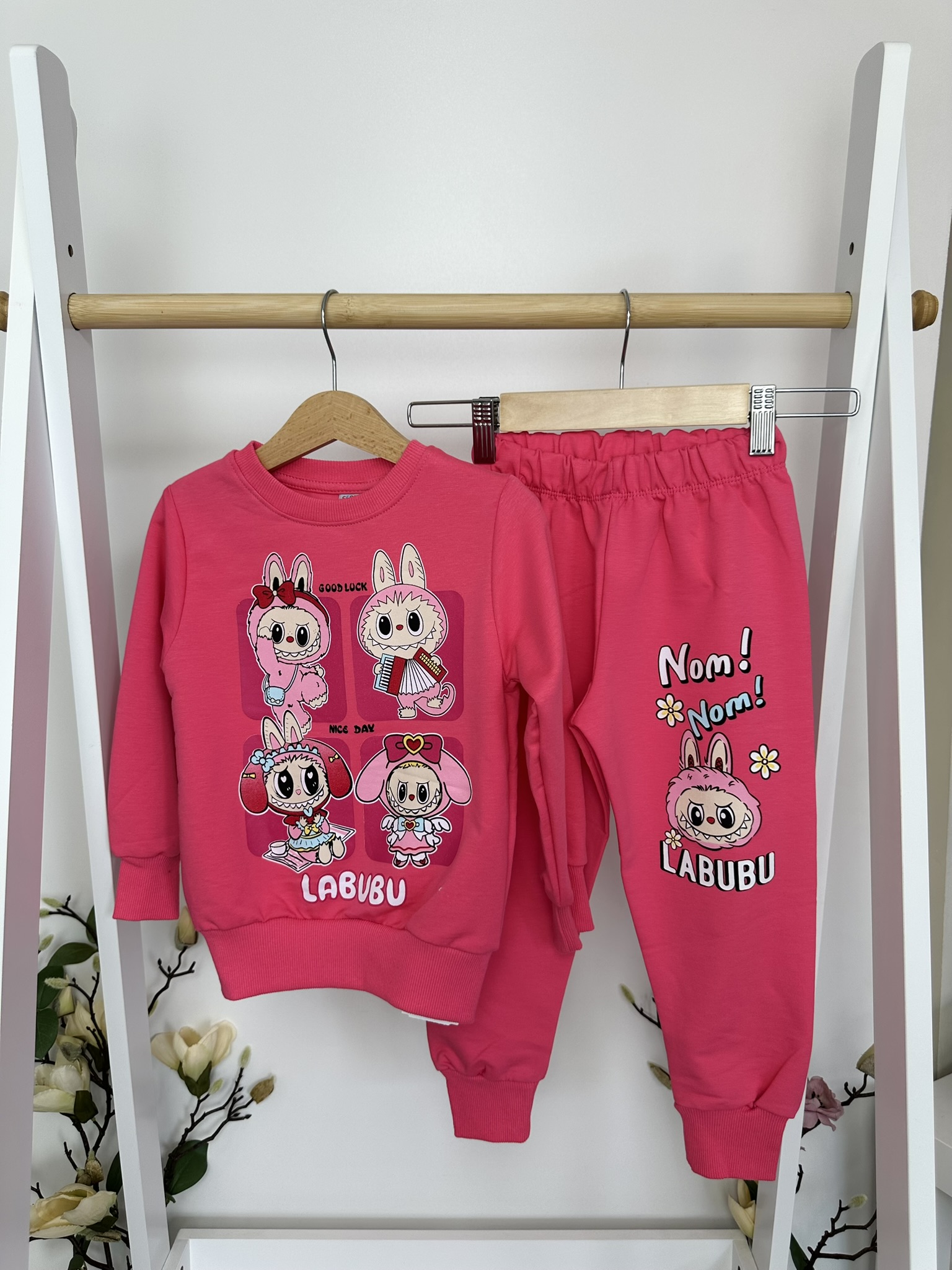 Този комплект с героите от Labubu е истинска радост за малките фенове на весели анимационни истории. Изключително удобен и цветен, той съчетава спортна визия с много игривост. Горнището е с ефектна щампа на героите в различни забавни роли, а долнището допълва стила с тематичен принт и комфортна кройка.