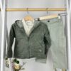 Комплектът включва риза с класическа линия, панталон с практичен дизайн и връхна част с цип, която допълва визията и осигурява комфорт при по-хладно време. Всички елементи са съчетани така, че да се носят заедно без нужда от допълнително комбиниране.