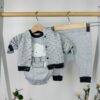 Готов ли е вашият мъник за първите си приключения? Този очарователен комплект омагьосва от пръв поглед със своето нежно излъчване и забавни мотиви, създавайки усещане за уют, комфорт и стил във всеки миг от ежедневието. Трите части са прекрасно съчетани, за да осигурят едновременно практичност и сладък, завършен вид — идеалният избор за разходки, игра или семейни моменти, които остават спомен.