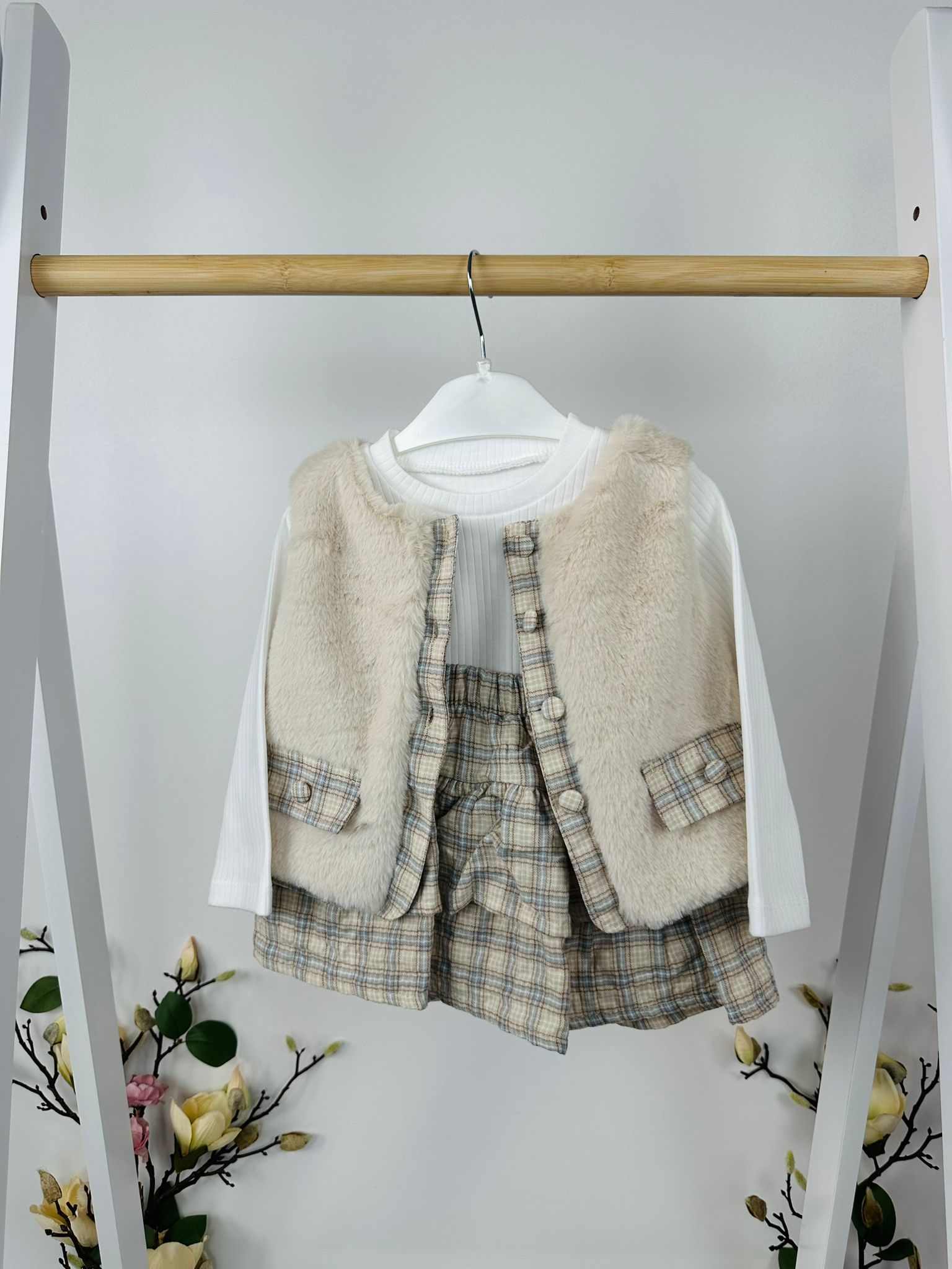 Изискан и уютен избор за специални моменти, комплект „Мека елегантност“ съчетава стил и практичност в хармонична визия от три части. Подходящ за родители, които търсят завършен аутфит с внимание към детайла.