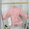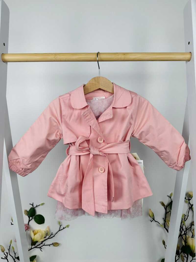 Този приказно красив комплект от рокля и яке е създаден за малките госпожици, които носят усещане за финес и нежност във всеки момент. Комбинацията съчетава ефирна рокля с флорален мотив и елегантно яке с колан, което подчертава талията и придава изтънчен силует. Дизайнът е лек, стилен и подходящ както за специални поводи, така и за празнични фотосесии или семейни разходки.