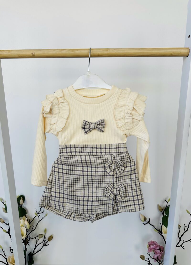 Този комплект е създаден за малки дами с голямо усещане за стил. Съчетава модерна визия с елегантно излъчване и изключително удобство. Подходящ за специални поводи, но и достатъчно комфортен за ежедневни разходки или гости.