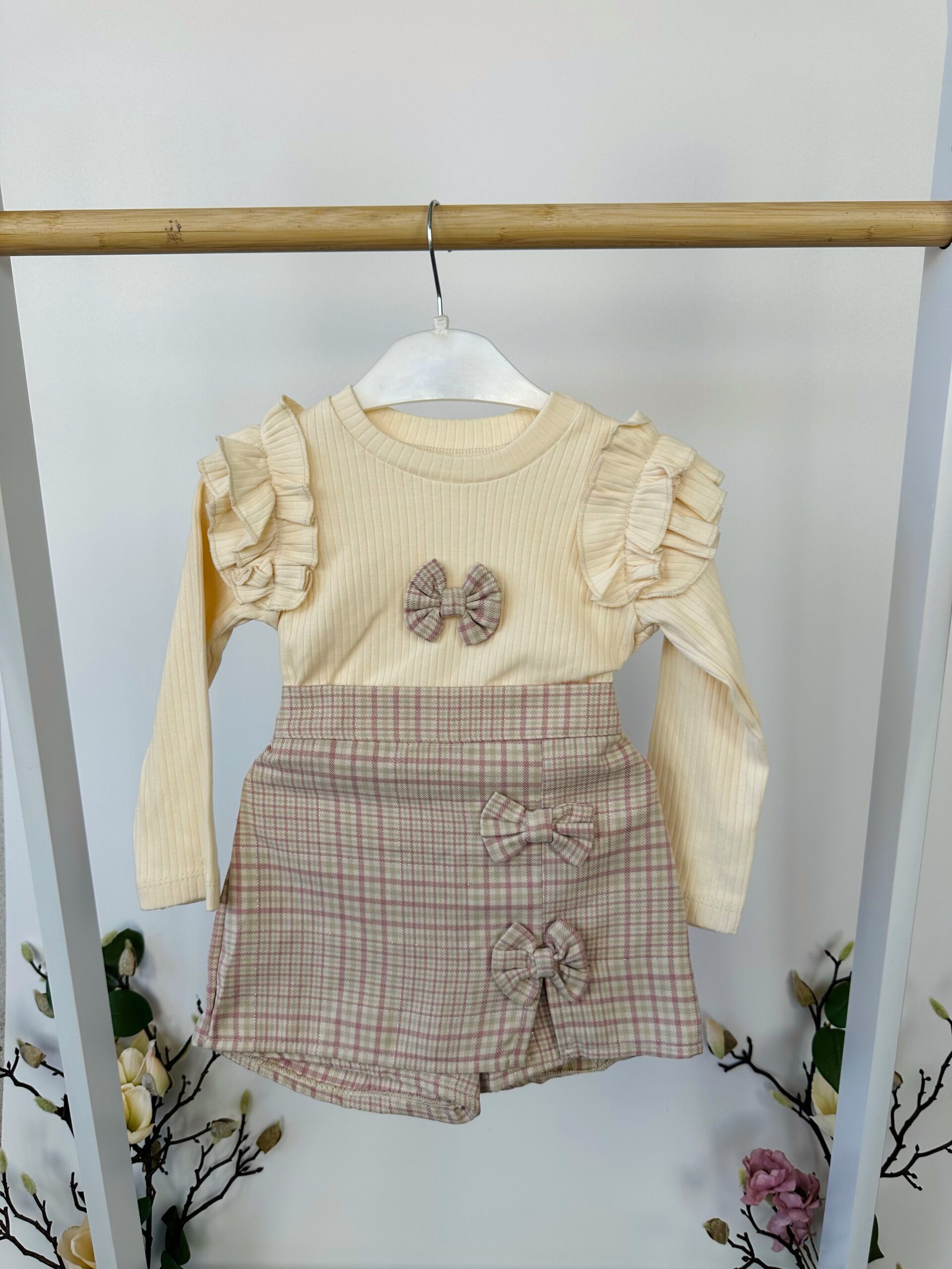 Този комплект е създаден за малки дами с голямо усещане за стил. Съчетава модерна визия с елегантно излъчване и изключително удобство. Подходящ за специални поводи, но и достатъчно комфортен за ежедневни разходки или гости.