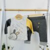 Създаден за малки откриватели, този комплект от три части съчетава удобство, игрив дизайн и практичност в едно. Слончето с апликация придава закачлив характер на визията, а раираните детайли носят усещане за стил и мекота.