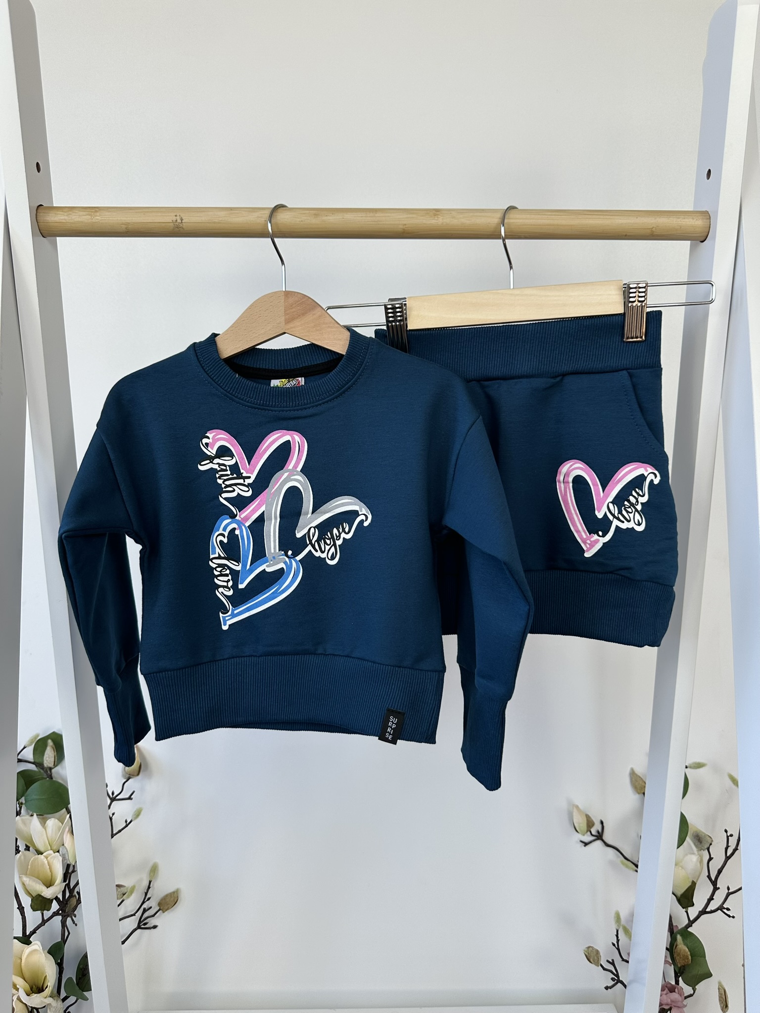 Този комплект е перфектен избор за модерни и енергични момичета, които обичат удобството, но и държат на визията си. Подходящ за ежедневие, игри и свободно време, с весел принт и изчистена кройка, която осигурява свобода на движение.