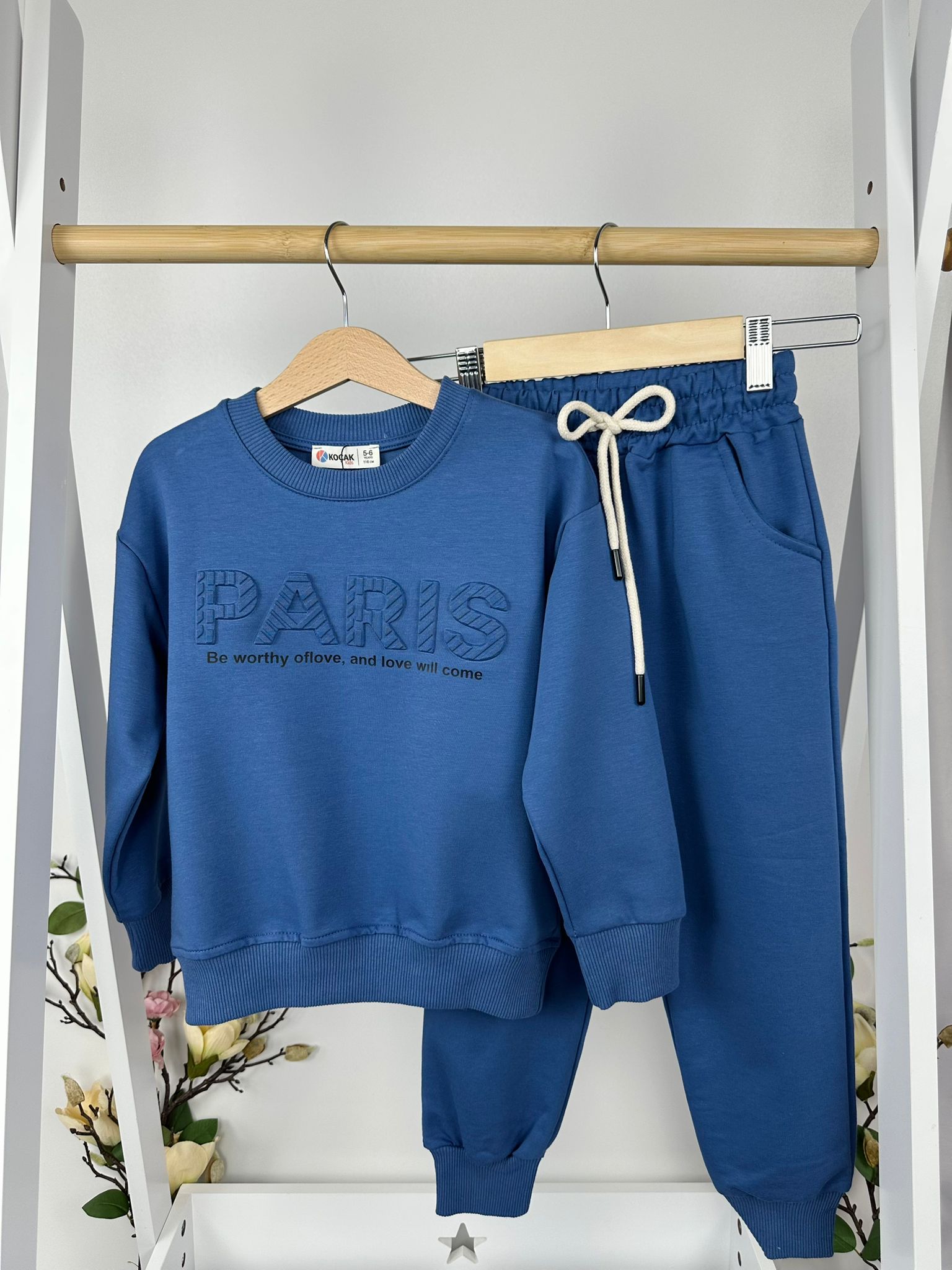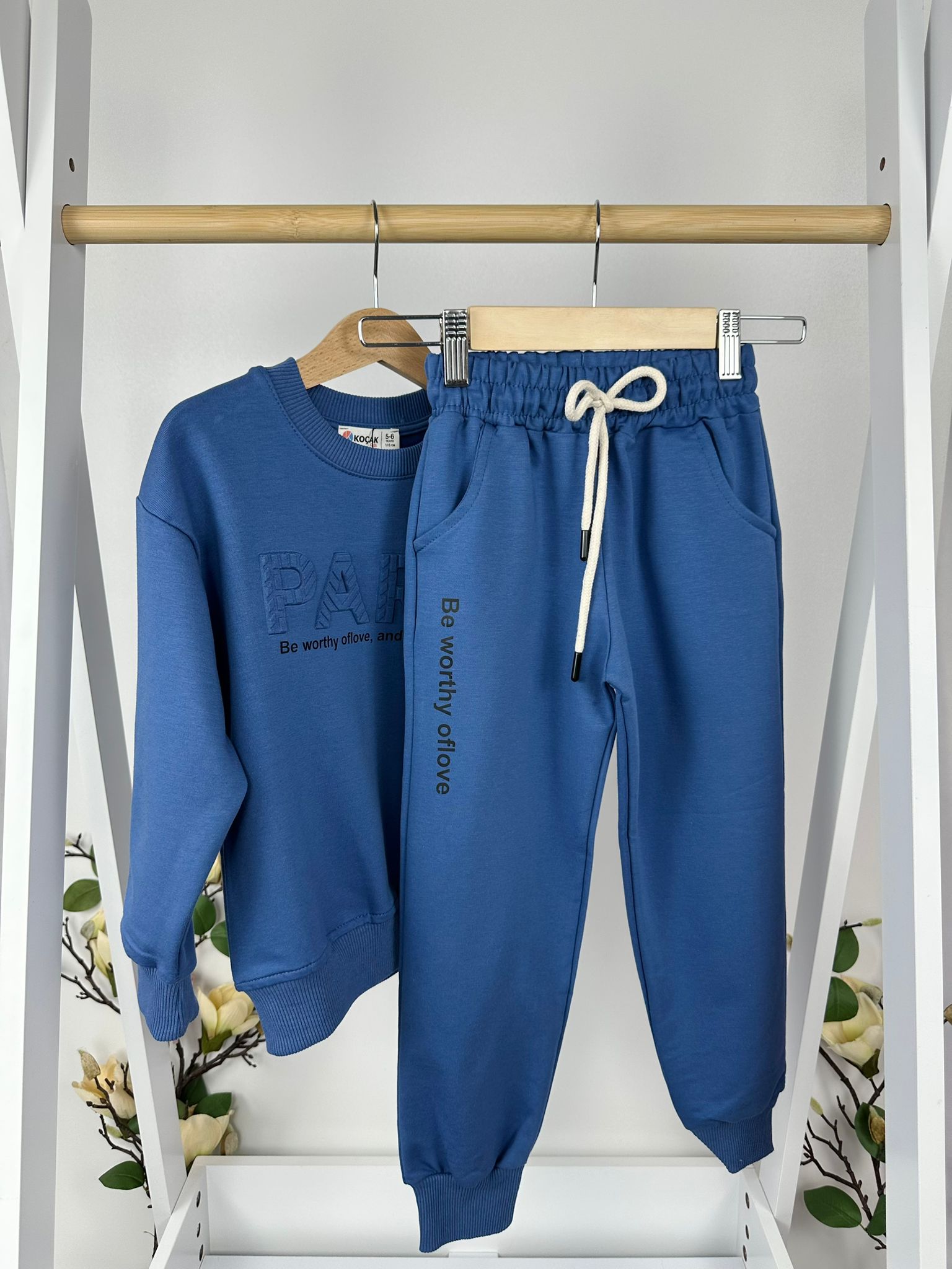 Стилен детски комплект, създаден за комфорт и модерна визия в ежедневието. Дизайнът с релефен надпис придава актуално излъчване, а добре балансираната кройка осигурява удобство при движение и игра. 💙