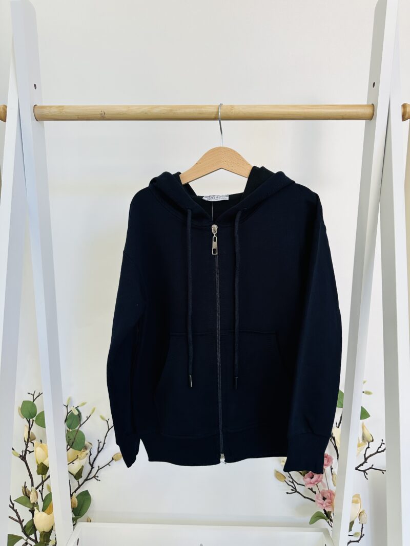 •Мек суитшърт с цип по цялата дължина •Качулка с връзки – допълнителна защита в по-хладни дни