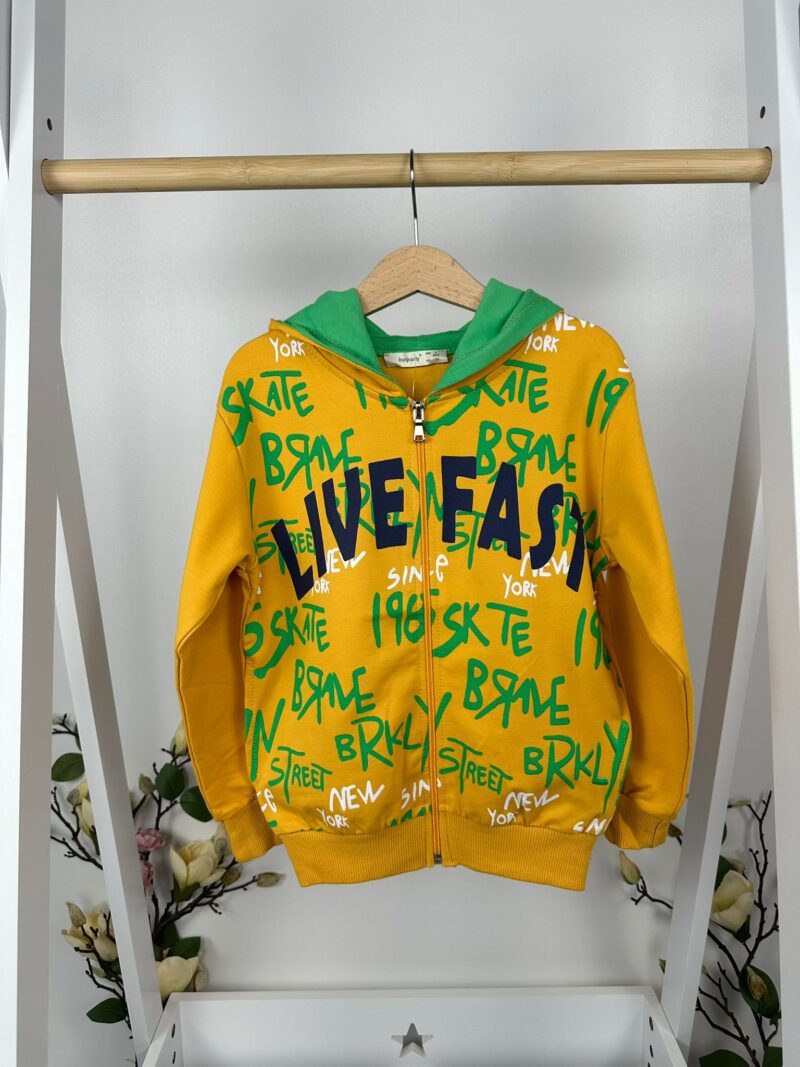 Моделът е с цип и качулка, което го прави практичен избор за динамични дни и променливо време. Щампата с street елементи добавя модерен акцент, а кройката осигурява комфорт и свобода на движение през целия ден.