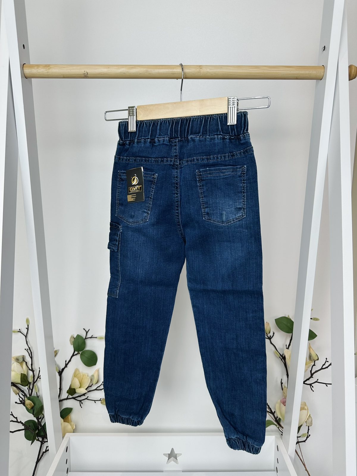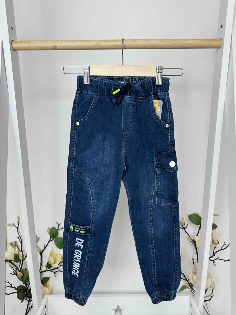 Удобни детски дънки с модерен дизайн и декоративни надписи. Ластичната талия и свободната кройка осигуряват комфорт, а стилните детайли ги правят подходящи за всеки малък моден ентусиаст.