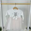 Тази очарователна рокличка съчетава удобството на спортната визия с елегантен акцент от красиви панделки. Изработена от меко и топло памучно трико, тя е идеална за хладните дни, като осигурява комфорт и свобода на движение. Разкроената долна част придава игривост, а стилният принт с панделки в различни десени добавя забавен и модерен акцент.