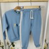 ✨ Какво го прави специален? Яркосиният цвят и веселата бродерия с усмихнато слънце създават позитивно настроение. Удобната кройка прави този комплект идеален за целодневни игри.