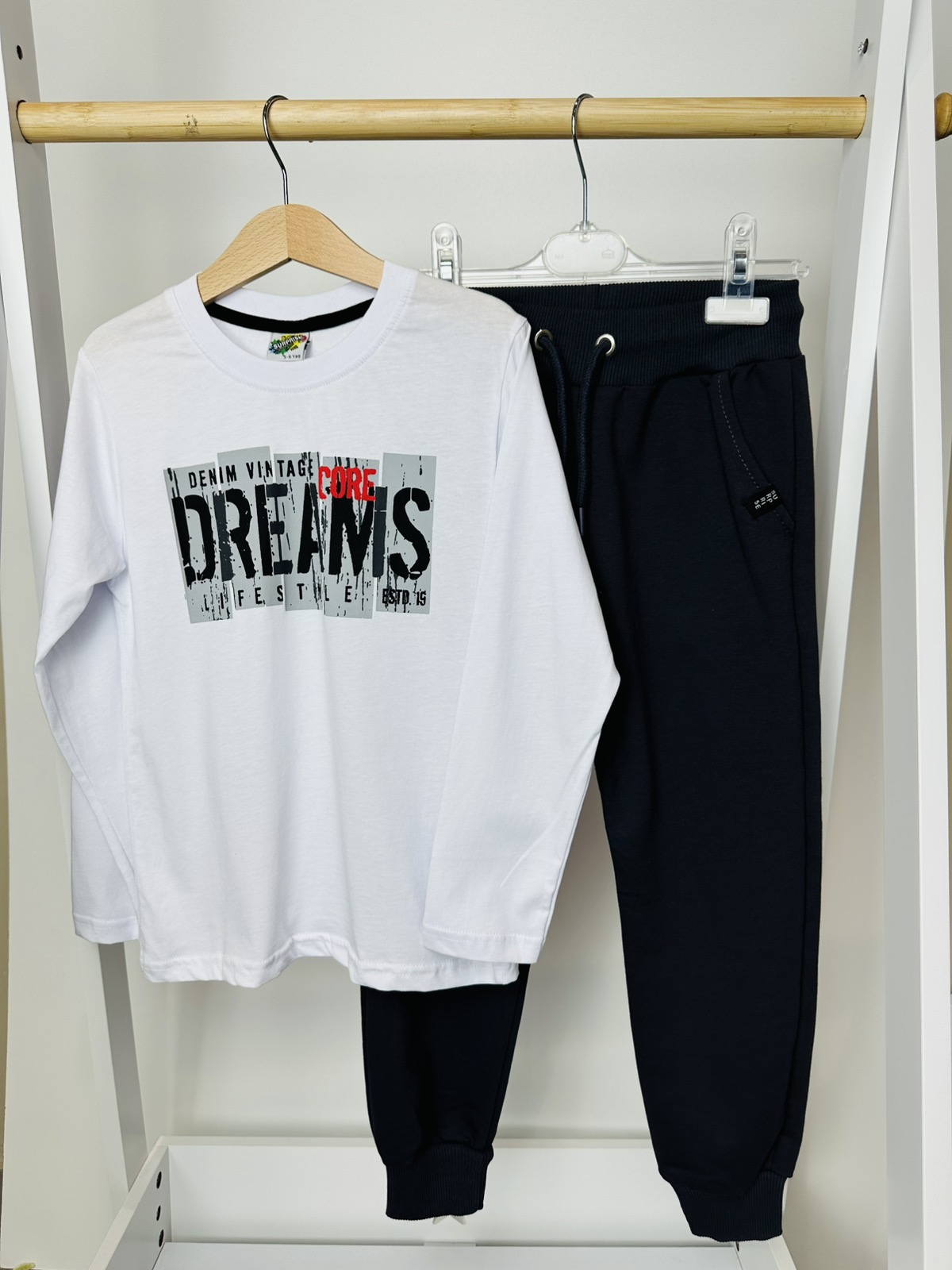 Този стилен и удобен комплект е създаден за малките любители на градския стил! Горнището с цип и качулка осигурява топлина и защита от вятър, а тениската с дълъг ръкав с интересен принт придава модерен акцент.