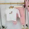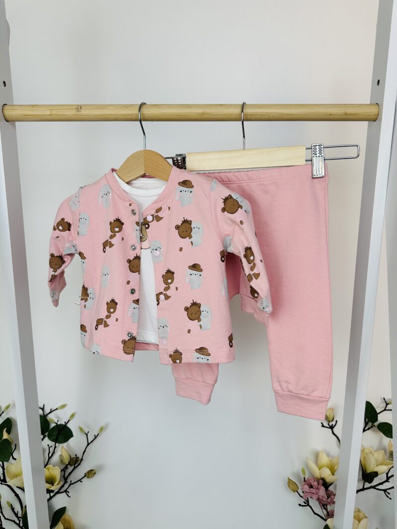 Потопете вашето мъниче в уют и мекота с този очарователен комплект в нежно розов цвят.