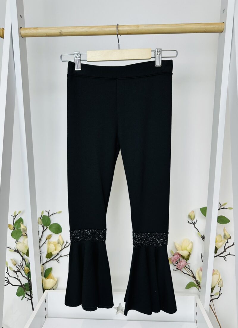 ✔ Какво включва: Черен клин с разкроени крачоли и брокатен детайл